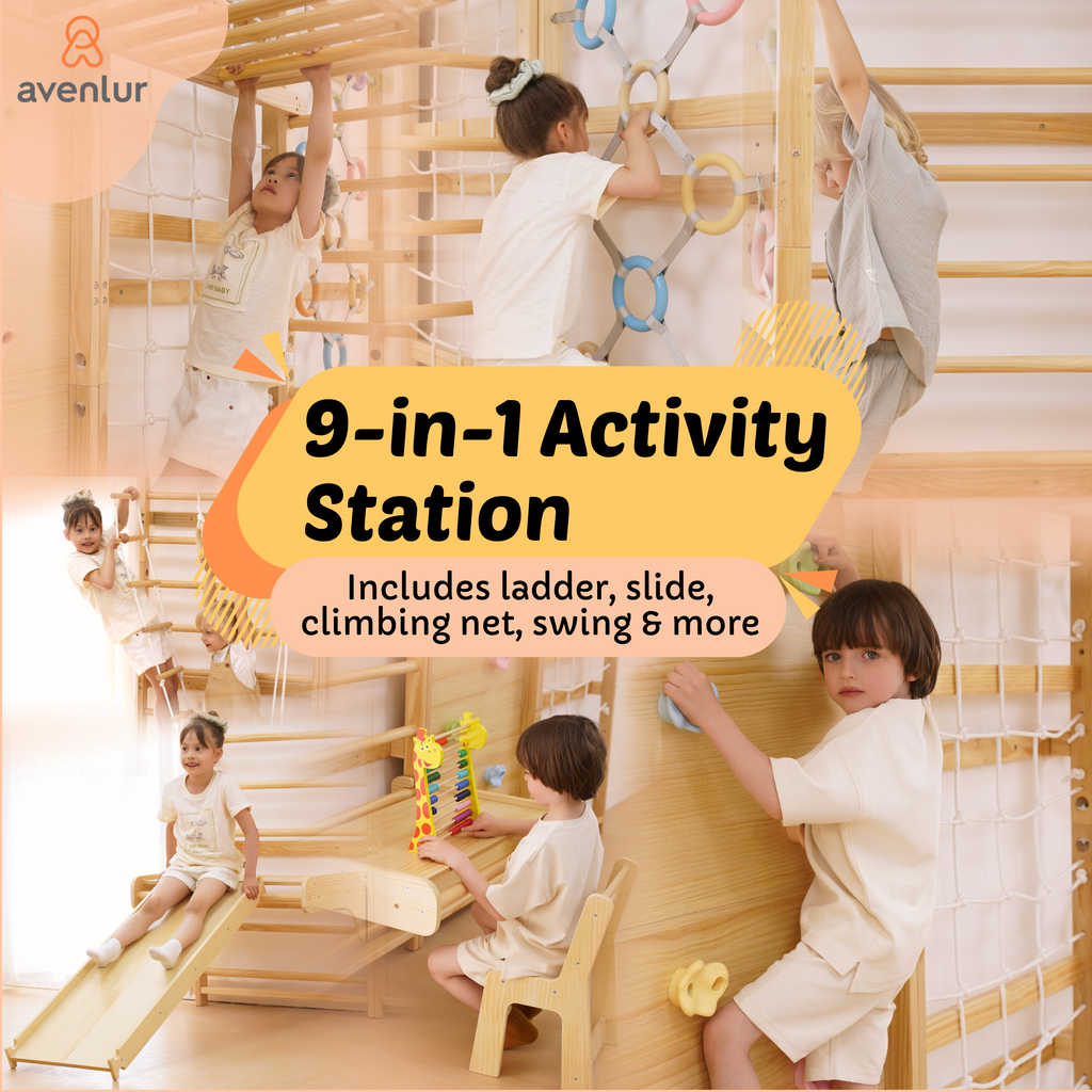 Unlike standard playsets, our 9-in-1 wall gym combines variety, quality, and design into one compact solution. It’s not just a climber—it's a full-body activity center built to grow with your child. Whether it's rainy days or everyday play, your child will stay active and engaged all year round.